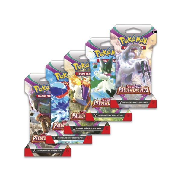 Sobre emblistado de Pokémon de la colección Evoluciones de Paldea – SV2 Escarlata y Púrpura.