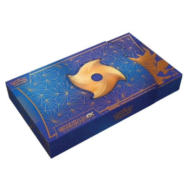 Vendrá con 16 sobres, una carta de Tera Greninja ex tanto en versión regular como en impresión metálica, una carta de Greninja ex regular, un tapete de juego de goma, una caja para mazo, una moneda metálica, seis dados de contador de daño, dos marcadores de condición de plástico y una carta con código.